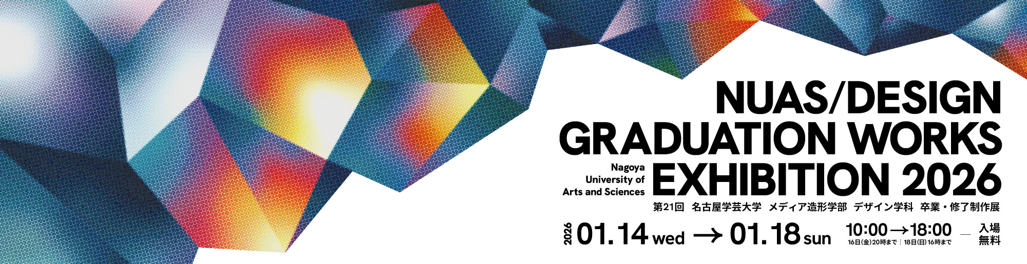 下記のとおり、第21回卒業・修了制作展を、2026年1月14日(水)〜1月18日(日)に愛知県美術館ギャラリーにて開催いたします。 4年間の集大成となる作品発表展覧会です。ぜひ足をお運びください。 &nbs