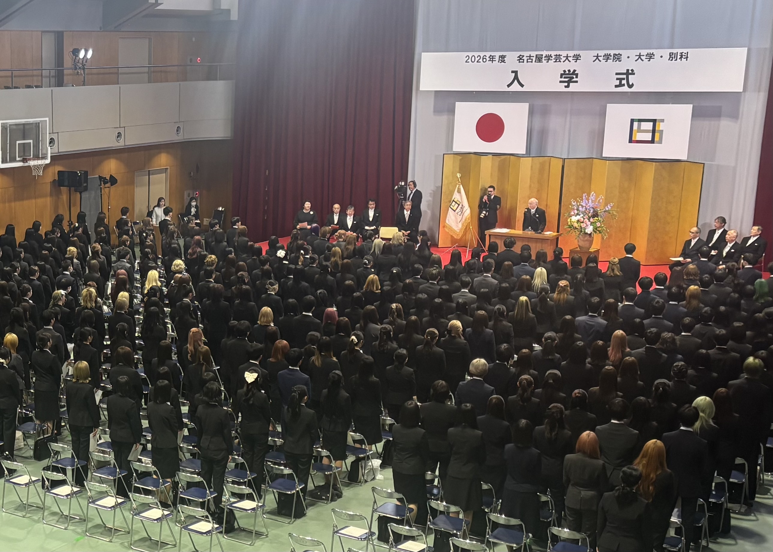 2026年4月3日(金)、2026年度名古屋学芸大学  大学院・大学・別科 入学式が本学体育館アリーナで行われ、メディア造形学部デザイン学科には25期生96名が入学しました。