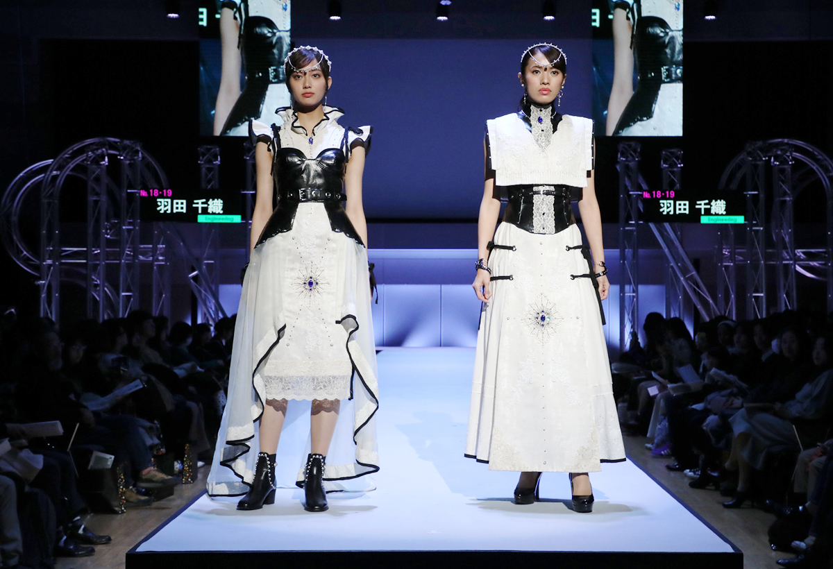 第15回卒業制作 ゴールド賞 制作者 羽田 千織 装飾芸術と民族衣装 民族衣装は装飾芸術の一つであり、人々にとって特別な衣装である。西洋と東洋それぞれの文化を比較し新たな民族衣装のあり方を研究した。 東洋の民族衣装のデザインをベースに西洋の装飾を施し、エレガントとカジュアルの相対するイメージをデザインに起こした。色はアイボリーとブラック、素材は柔らかい素材、固い素材を使用し、色と素材感それぞれの対比を利用し、美しい女性のシルエットを作った。 一覧ページへ