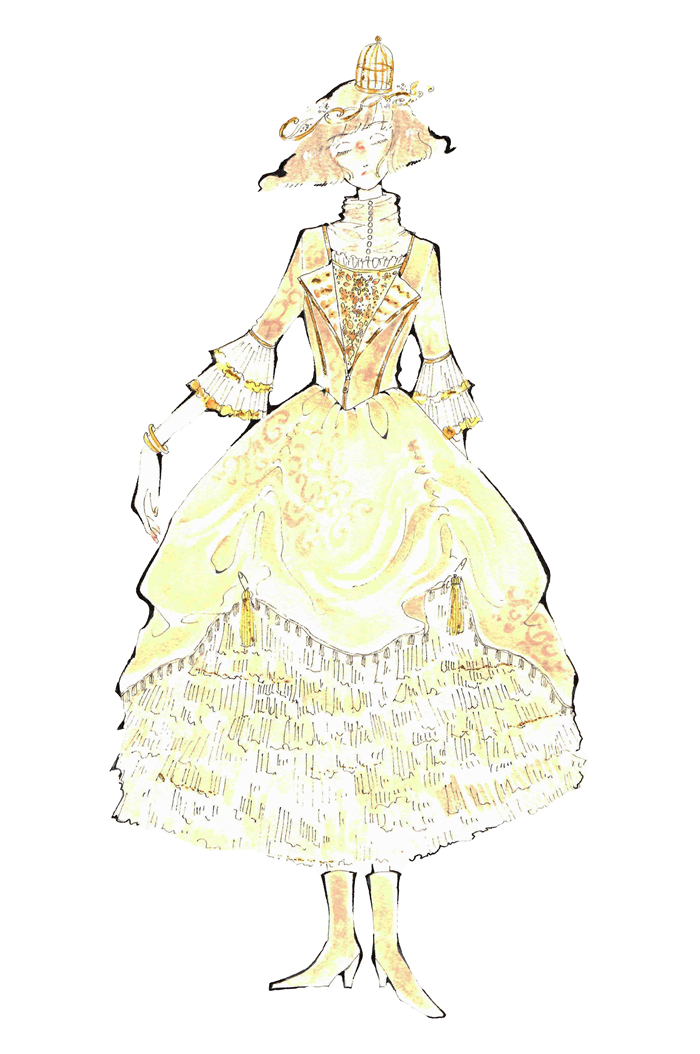 - 「魔笛」の登場人物である、王女パミーナの衣裳を制作。作曲家であるモーツァルトが生きた18世紀の衣裳の要素を取り入れながら、物語における彼女の役割を表現した。