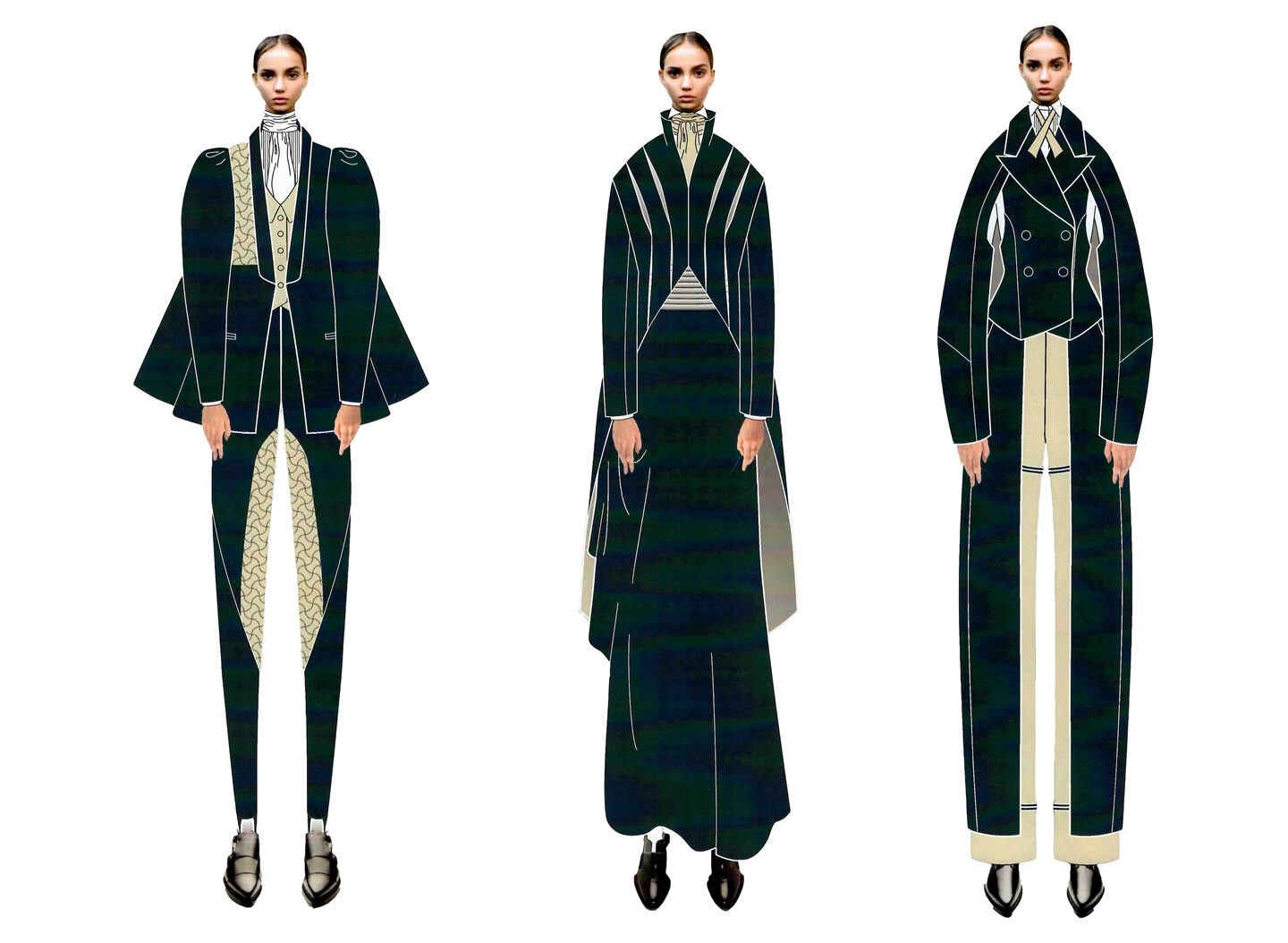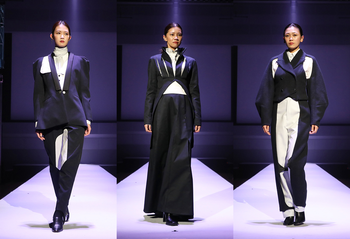 第16回卒業制作 ゴールド賞 制作者 川端 夏実 機能的フォーマルウェア 「ジェンダーレス・フォーマル」をテーマに、常識にとらわれないスーツスタイルを提案する。 貴族が運動時に身に着けてきた乗馬服やハンティングジャケット、ノーフォークジャケットなどのディテールから着想を得てデザインした。 可動域の拡大を狙った構造で機能性を実現し、格式あるメンズフォーマルと掛け合わせることで、礼儀や敬意を重んじる姿勢を表現した。 一覧ページへ