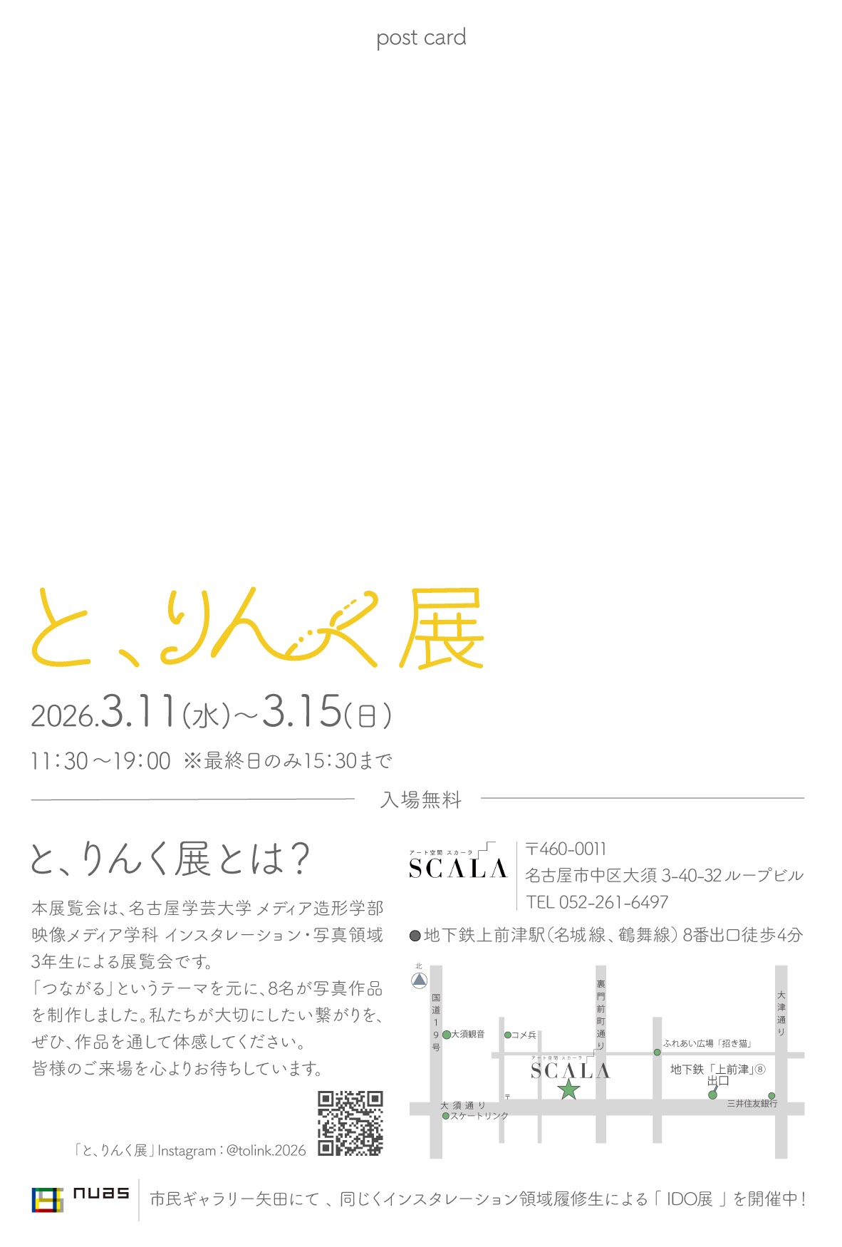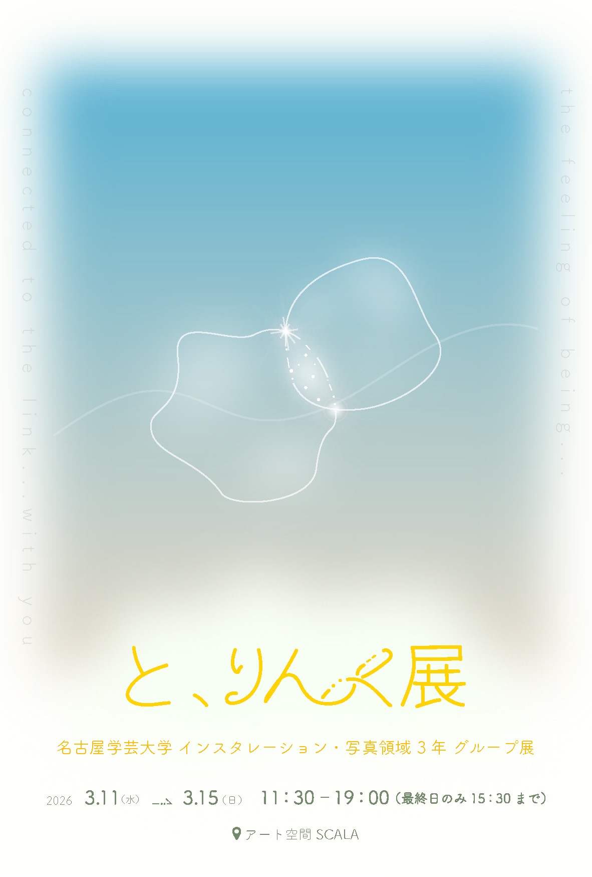 映像メディア学科インスタレーション・写真領域の3年生による作品展「と、りんく展」が開催されます。